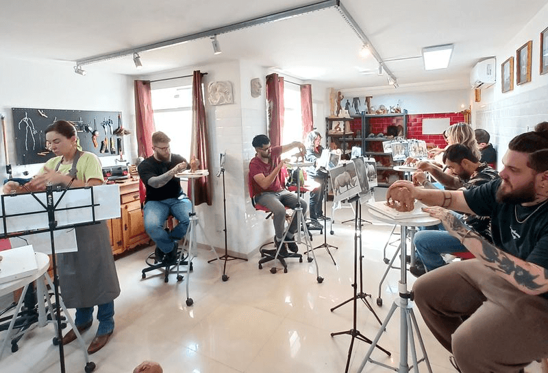 Sendo o desenho a principal base das artes visuais, alternamos os exercícios entre desenho e escultura, facilitando assim paralelos técnicos e relações visuais